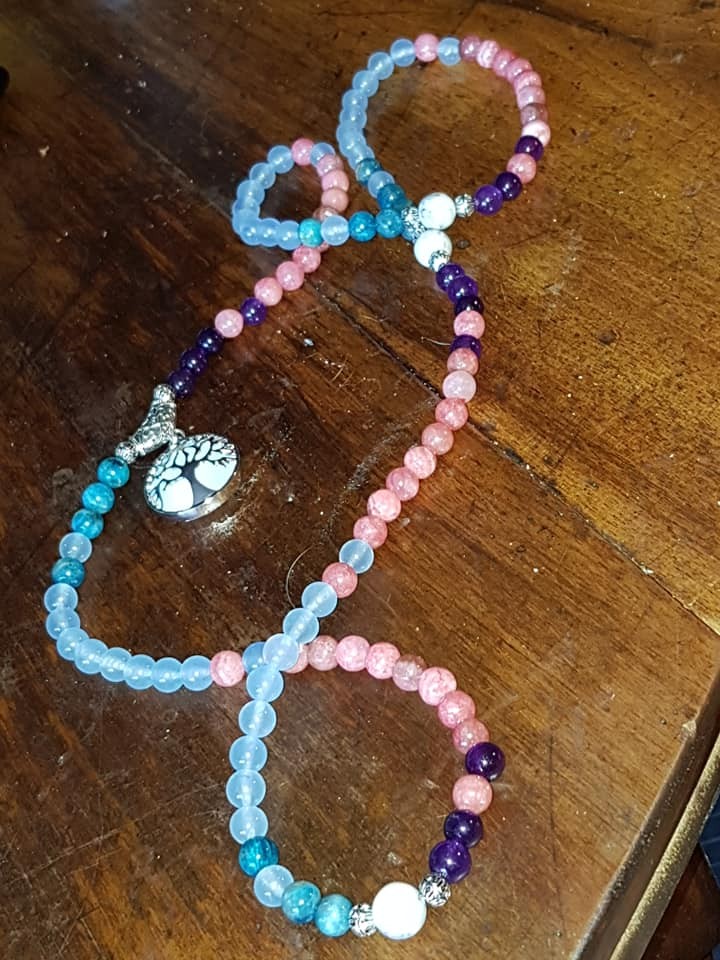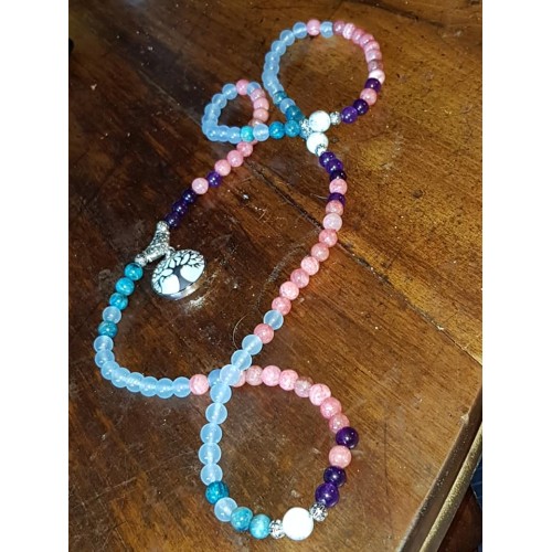 Mala 108 perles, améthyste, howlite et aigue marine.