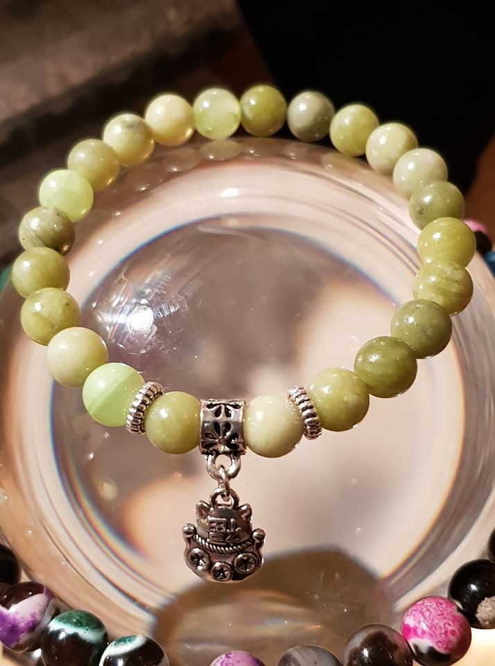 Bracelet "maneki neko*" en jade jaune, pierre de prospérité et de longévité.
