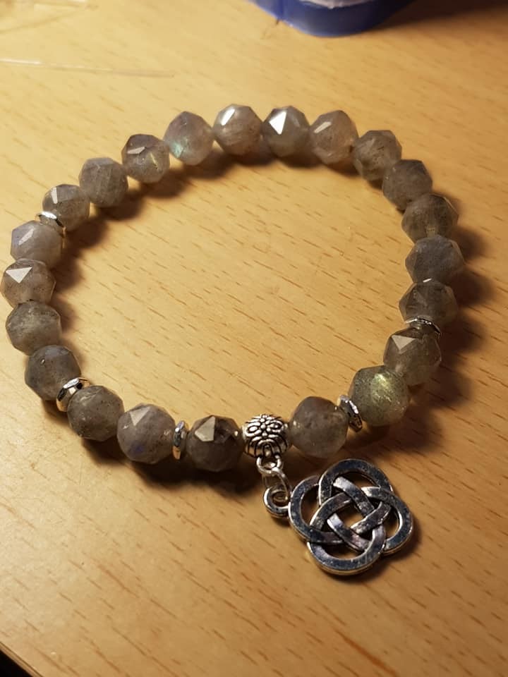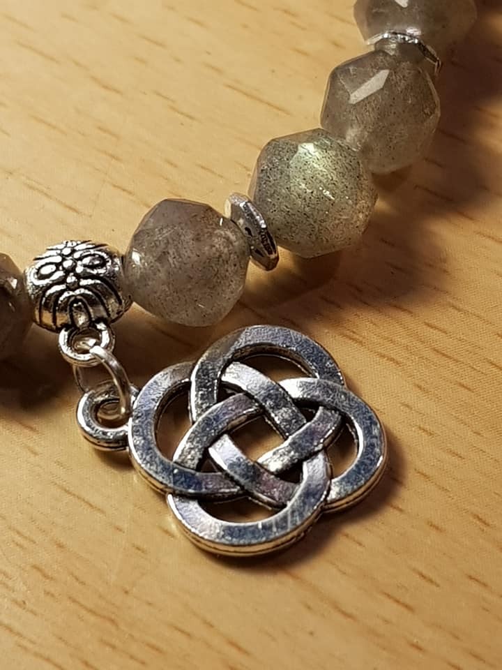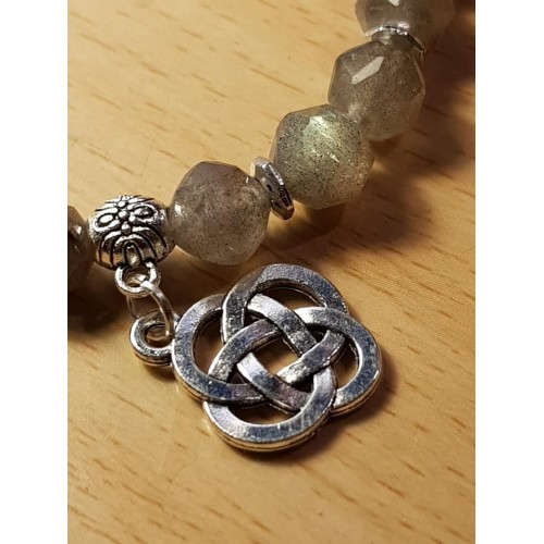 Bracelet en labradorite facettée et noeud infini chinois (Shrivatsa).
